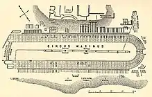 - [f] ^ Havia muitos outros circos em todo o Império Romano. O Circo de Maxêncio, outro grande circo, foi construído no início do século IV a.C., perto de Roma, perto da Via Ápia. Houve grandes circos em Alexandria e Antioquia, e Herodes, o Grande construiu quatro circos na Judeia. Arqueólogos que trabalham num complexo habitacional em Essex desenterraram o que acreditam ser a primeira arena romana de corridas de bigas a ser encontrada na Grã-Bretanha.[54]