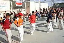 Crianças brincando de corrida de sacos.