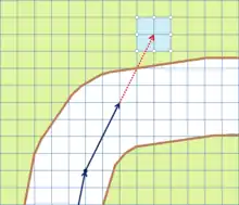 Alguns conjuntos de regras permitem que o segmento de reta que representa um movimento possa cruzar a fronteira duas vezes, com os pontos de início e fim dentro da pista. No entanto, com pistas muito complicadas, isso pode permitir que alguns atalhos resultem em benefício aos corredores que saiam da pista.