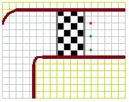 Alternativamente, a pista pode ser desenhada só com linhas retas e com cantos em pontos da grade única. Isso elimina a necessidade de decidir os pontos duvidosos. Os jogadores podem ser autorizados a tocar as paredes, mas não atravessá-las.