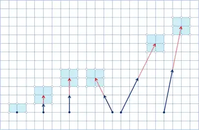 Matemáticamente falando, cada movimento pode ser representado por um vetor. Por exemplo, um movimento duas casas para a direita e quatro para cima pode ser representado pelo vetor (2,4).