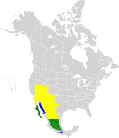 Passa o inverno no noroeste do México, desde a Baixa Califórnia, Sonora e Chihuahua, ao longo da costa a sul de Oaxaca e no sul da Califórnia. Está presente durante todo o ano nas regiões central e sul do México. Pode ser encontrada casualmente em toda a parte ocidental dos Estados Unidos e também no Minnesota, Wisconsin e Louisiana.[1]