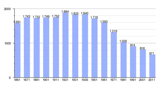 | Variação demográfica do município entre 1861 e 2011[3] |