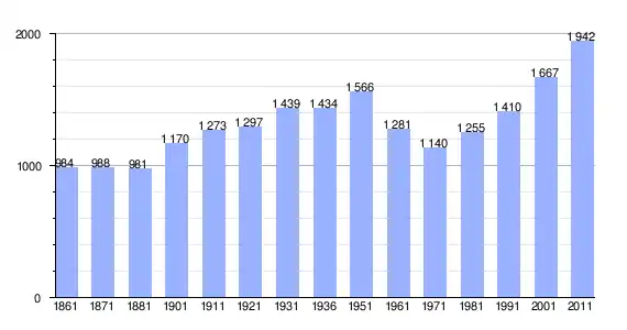 | Variação demográfica do município entre 1861 e 2011[3] |