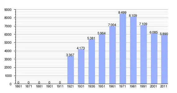 | Variação demográfica do município entre 1861 e 2011[3] |