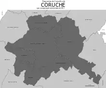 É sede do município de Coruche,[2] um dos maiores de Portugal, com 1 115,72 km² de área[3] mas apenas 17 356 habitantes (2021),[4][5] subdividido em 6 freguesias.[2] O município é limitado a norte pelos municípios de Almeirim e Chamusca, a nordeste por Ponte de Sor, a leste por Mora, a sueste por Arraiolos, a sul por Montemor-o-Novo e pela fracção secundária do Montijo, a oeste por Benavente e a noroeste por Salvaterra de Magos.