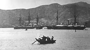 Em 9 de agosto de 1884, forças navais francesas atacaram e capturaram Keelung na ilha de Formosa em resposta ao envolvimento chinês na Campanha de Tonkin e especificamente na emboscada Bắc Lệ.[12][14] Pouco depois, o Esquadrão do Extremo Oriente da Marinha Francesa, sob o comando do Contra-almirante Amédée Courbet, compreendendo os cruzadores Duguay-Trouin, Villars e d'Estaing, juntamente com vários barcos menores, foram enviados para o Rio Min para atacar o Arsenal em Foochow. Enquanto viajavam rio acima, os chineses declararam guerra aos franceses, marcando oficialmente o início da Guerra Sino-Francesa.[14]