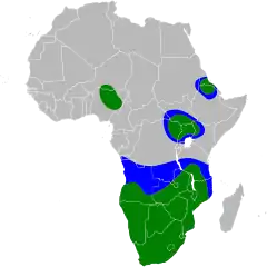 A sua área de distribuição abrange diversas regiões da África subsariana.