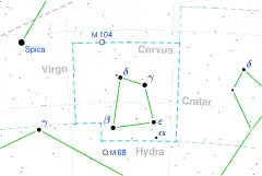 As constelações vizinhas, segundo as fronteiras atuais, são a Virgem, a Taça e a Hidra.