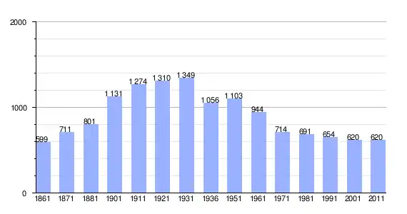 | Variação demográfica do município entre 1861 e 2011[3] |