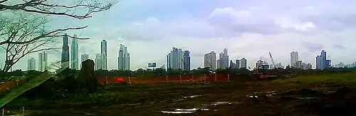 Uma de suas seções, onde se encontra o Parque Industrial era conhecida como o "Vertedouro de Panamá Velho", pois trata-se de uma porção de terreno artificial criada com o depósito do material que foi extraído para a construção do canal do Panamá, durante anos esta grande extensão do terreno esteve descuidada, pero recentemente se ha convertido na Área Industrial (Utilizada para Centros de Distribuição de Mercadoria). O resto das seções, eram manguezaies e selva virgem, donde se construyen las más modernas edificações de esta ciudad.[1] Para poder habilitar as terras de manguezais, se verteram milhões de toneladas de terra e rochas, a maioria provenientes de uma colina próxima a área de Villa Guadalupe, a qual foi eliminada completamente.