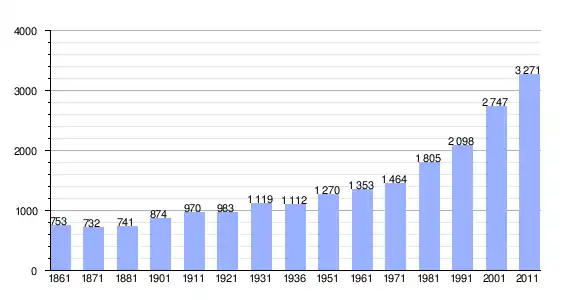 | Variação demográfica do município entre 1861 e 2011[3] |