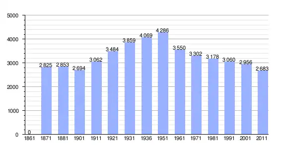 | Variação demográfica do município entre 1861 e 2011[3] |