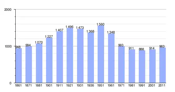 | Variação demográfica do município entre 1861 e 2011[3] |