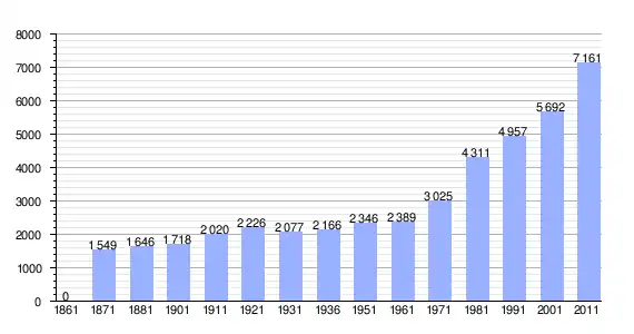 | Variação demográfica do município entre 1861 e 2011[3] |