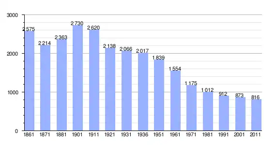 | Variação demográfica do município entre 1861 e 2011[3] |