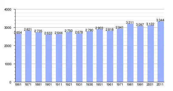| Variação demográfica do município entre 1861 e 2011[3] |