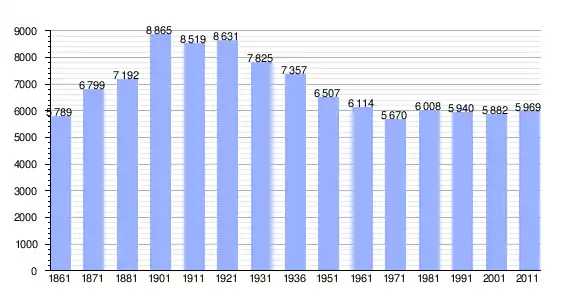 | Variação demográfica do município entre 1861 e 2011[3] |