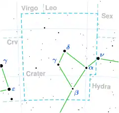 As constelações vizinhas, segundo as delineações atuais, são a Virgem, o Leão, o Sextante, a Hydra e o Corvo.