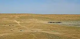 O local foi identificado em 1971 por engenheiros da então União Soviética pensando que este poderia ser um campo de petróleo.[4] A partir dessa premissa, eles montaram um acampamento com uma plataforma de perfuração para avaliar a quantidade de gás e petróleo disponíveis no local. Como os soviéticos estavam satisfeitos com o sucesso em encontrar esses recursos, eles começaram a armazenar o gás. Porém, durante as escavações foi descoberta uma caverna subterrânea de grande profundidade, repleta de gás tóxico. Num certo momento dos trabalhos, o chão sob a plataforma de perfuração cedeu abrindo uma grande cratera que engoliu os equipamentos. Nenhuma vida foi perdida no incidente, mas grandes quantidades de gás metano foram lançadas na atmosfera criando enormes problemas ambientais e imenso dano ao povo das aldeias, resultando em algumas mortes.[carece de fontes]