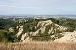Crete Senesi quer dizer "argilas de Siena" e a coloração cinzenta distintiva do solo dá à paisagem uma aparência muitas vezes descrita como lunar. Esta argila característica, conhecida como mattaione, representa os sedimentos do mar do Plioceno, que abrangia a área entre 2,5 e 4,5 milhões de anos atrás. Nas proximidades, também é a região semi-árida conhecida como Deserto de Accona. A área sofreu despovoamento extremo devido a pragas na Idade Média, e a consequente falta prolongada de cultivo facilitou a erosão de quase completa da superfície do solo. Mais tarde, foi colonizada por fazendeiros da Sicília adepto ao cultivo de cereais com menos de condições ideais, e que foram capazes de estabelecer o cultivo sustentável de trigo no argilas Siena.