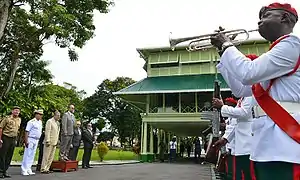 ![]() Ministro da Defesa do Brasil, Raul Jungmann, durante sua visita à Guiana durante a Crise da Guiana de 2018. | |||