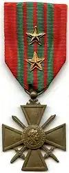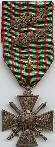 A Croix de Guerre pode ser concedida como prêmio individual ou como prêmio de unidade para aqueles soldados que se distinguem por atos de heroísmo envolvendo combate com o inimigo. A medalha é concedida àqueles que foram "mencionados em despachos", significando que um ato ou feitos heroicos foram realizados merecendo uma citação do quartel-general da unidade de um indivíduo. O prêmio de unidade da Croix de Guerre com palma foi concedido a unidades militares cujos membros realizaram atos heroicos em combate e foram posteriormente reconhecidos pelo quartel-general.[3][4]