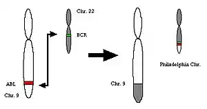 Cromossomo Filadélfia ou translocação Filadélfia é uma anormalidade cromossômica que está associada à leucemia mielóide crônica. Corresponde a uma translocação cromossômica recíproca envolvendo os braços longos dos cromossomos 9 e 22.