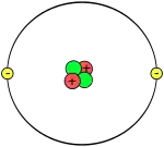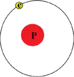 Esquema didático de um átomo de hidrogênio, mostrando um próton (em vermelho) e um elétron (amarelo). |