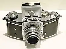 - 1954 - A Leica M3 é apresentada pela Leitz na Photokina, e dá origem à linha Leica M. Essa rangefinder revoluciona o mercado fotográfico com a precisão de seu visor e telêmetro[66] e torna-se a câmera mais vendida pela Leica em todos os tempos.[67] Isso obriga os demais fabricantes de câmeras a concentrarem seus esforços no desenvolvimento tecnológico de SLR.[66]