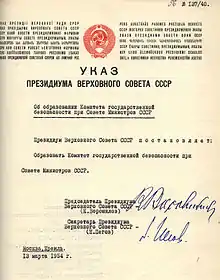| Cronologia dos soviéticos "Órgãos de segurança do estado" (em russo: organov Gos(ugarstvennoy)bezopasnosti) | ||