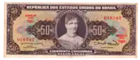 - Na mudança da moeda para Cruzeiro novo, a cédula recebeu um carimbo redondo com o valor de 50 centavos.