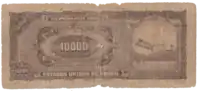 10000 Cruzeiros | Frente: Efígie de Santos Dumont e estampa do então recém-criado Banco Central[nota 3] Verso: Vôo do 14-bis Dimensões: 164 x 72 mm |