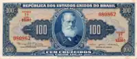 100 Cruzeiros | Frente: Efígie de D. Pedro II. Verso: Cultura nacional Dimensões:157 x 67 mm |