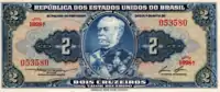 2 Cruzeiros | Frente: Efígie de Luis Alves de Lima e Silva. Verso: Escola Militar de Rezende. Dimensões: 157 x 67 mm. |