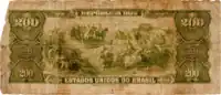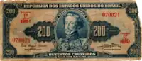 200 Cruzeiros | Frente: Efígie de D. Pedro I. Verso: Independência ou morte Dimensões:157 x 67 mm |