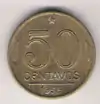 - Na mudança da moeda para Cruzeiro novo, a cédula recebeu um carimbo redondo com o valor de 50 centavos.