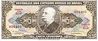 5 Cruzeiros | Frente: Efígie do Barão do Rio Branco. Verso: Conquista do Amazonas Dimensões:157 x 67 mm. |