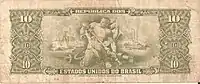 10 Cruzeiros | Frente: Efígie de Getúlio Vargas. Verso: Unidade nacional de Cadmo Fausto de Sousa Dimensões: 157 x 67 mm. |