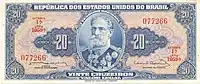 20 cruzeiros | Frente":Efígie de Deodoro da Fonseca Verso:Proclamação da república de Cadmo Fausto de Sousa Dimensões:158 x 68 mm |