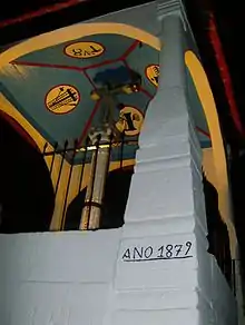 No interior, ao centro, tem uma coluna trabalhada em granito com a cruz de imagem dupla no topo e o tecto é forrado a madeira, com pinturas de arte Sacra e alusivas à crucificação de Cristo.