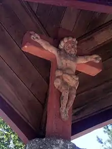 Trata-se de um monólito bem conservado, de granito, com uma cruz latina em madeira com uma representação de Cristo em pedra.