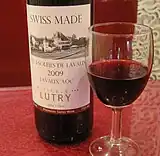 O vinho é largamente produzido em território suíço, em 2008 era feito em aproximadamente 15.000 hectares dos cantões de Genebra, Neuchâtel, Ticino, Vaud e Valais.[45] As principais variedades de uva plantadas dedicadas a produção de vinho são a Pinot noir em torno de 30% e a uva Chasselas em torno de 27%, porém são feitos com mais de 200 espécies de uvas.[46]