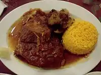Carne, quando disponível em caderneta de racionamento é geralmente servida em molhos leves. O molho mais popular, usado para acompanhar não apenas porco assado, mas qualquer carne, é o Mojo ou Mojito (não confundir com o coquetel mojito), feito com azeite, alho, cebola, especiarias como orégano e laranja amarga ou suco de limão. A origem do mojo cubano vem dos molhos das Ilhas Canárias. O mojo cubano é feito com ingredientes diferentes, mas utiliza a mesma ideia e técnica das Ilhas Canárias. Obviamente, com tantos imigrantes das Ilhas Canárias em Cuba, a influência canária seria forte. Roupa Velha é um prato de carne desfiada (geralmente peito) cozida em fogo brando com molho de tomate crioulo feito separado 'Roupa velha' é o nome espanhol que significa "roupas esgarçadas, velhas nas quais as tiras de carne assemelham-se" Roupa Velha é também originária das Ilhas Canárias, como toda a origem da comida Cubana. Boliche é uma carne vermelha, recheada com linguiça e ovos cozidos.