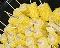 Alimentos de rua incluem ensopados, safú (uma fruta) e espiga de milho.[6]