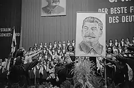 O culto à personalidade de Josef Stalin tornou-se parte proeminente da cultura da União Soviética a partir de dezembro de 1929, depois de uma suntuosa celebração para o aniversário de 50 anos do líder soviético.[1] Pelo restante de seu governo, a imprensa soviética o retratou como um líder omnipotente, onisciente, cujo nome era onipresente. A partir de 1936, o jornalismo soviético começou a referir-se a ele como o "Pai das Nações".[2]
