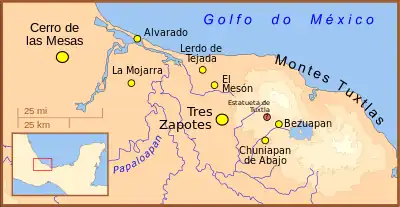 Tres Zapotes e eventualmente Cerro de las Mesas foram os maiores centros epiolmecas, apesar de nenhum deles ter atingido a dimensão e importância das grandes cidades olmecas anteriores ou da posterior El Tajín. Outros sítios epiolmecas dignos de nota incluem El Mesón, Lerdo de Tejada, La Mojarra, Bezuapan e Chuniapan de Abajo.