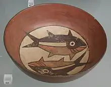 A cerâmica nasca foi dividida em nove fases. As representações visuais encontradas na cerâmica da fase 1 (também chamada de proto-nasca) incorporaram temas realistas, como frutas, plantas, pessoas e animais. O realismo ganhou importância nas três fases seguintes (2, 3, 4) denominadas fases "monumentais". A cerâmica dessas fases inclui representações de seu assunto principal contra um fundo vermelho, preto ou branco ousado. Na fase 5 o houve considerável experimentação, incluindo a adição de raios, volutas e outros anexos "proliferativos" aos motivos sobrenaturais nos vasos. A fase 5 é chamada de "transicional", pois faz a ponte entre a mudança de estilo entre o naturalismo das fases 2 e 4 e os elementos proliferantes adicionados aos motivos nas fases 6 e 7.[11]