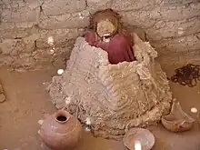 ![]() Estrutura piramidal em Cahuachi, local que servia como centro de peregrinação da cultura nasca | |||||||||