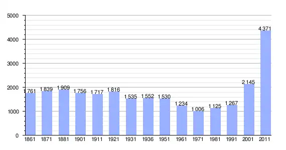 | Variação demográfica do município entre 1861 e 2011[3] |